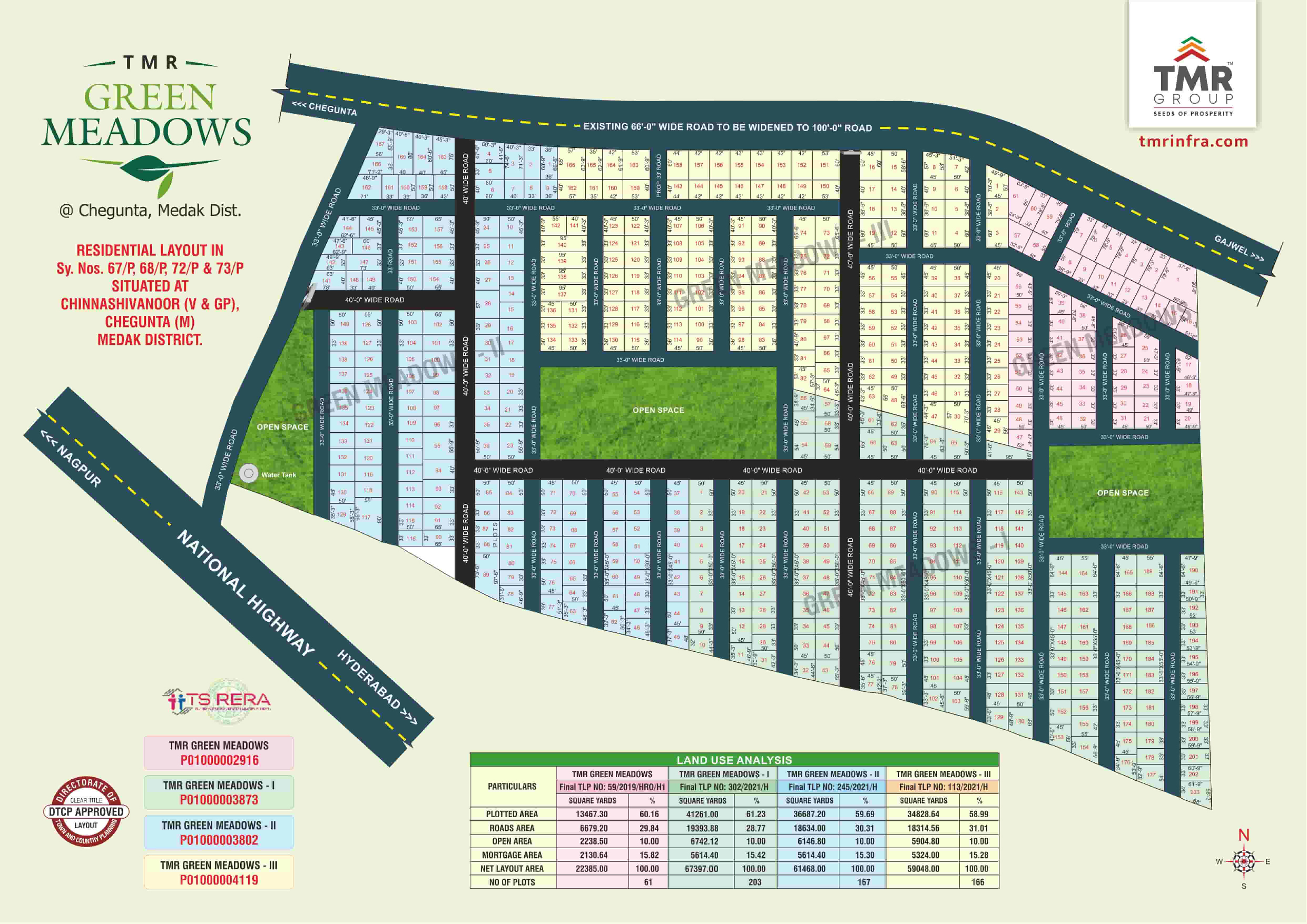TMR Green Meadows at Chegunta is located at the cusp of Ecologically delightful surroundings, seamlessly Connected prominent destinations and potentially Outgrowing future developments. This is where 50 acres of a gated community begins to flourish and create more avenues for the world to prosper as well.